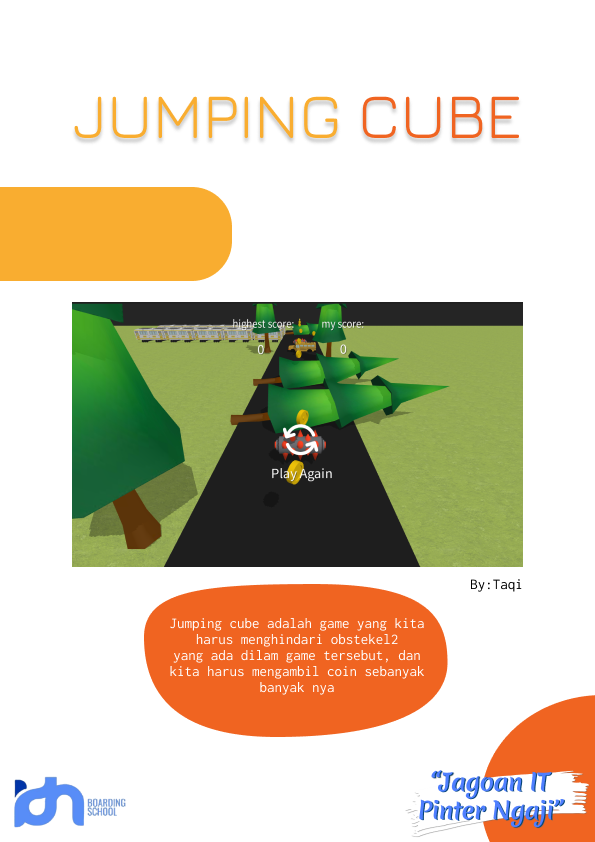 Jumping cube adalah game dimana kita menjadi cube dan kita harus menghindari obstekel obstekel yang ada pada game tersebut. Dan di game ini kita bukan cuman untuk menghindari, tapi kita juga harus mengambil coin sebanyak banyak nya.