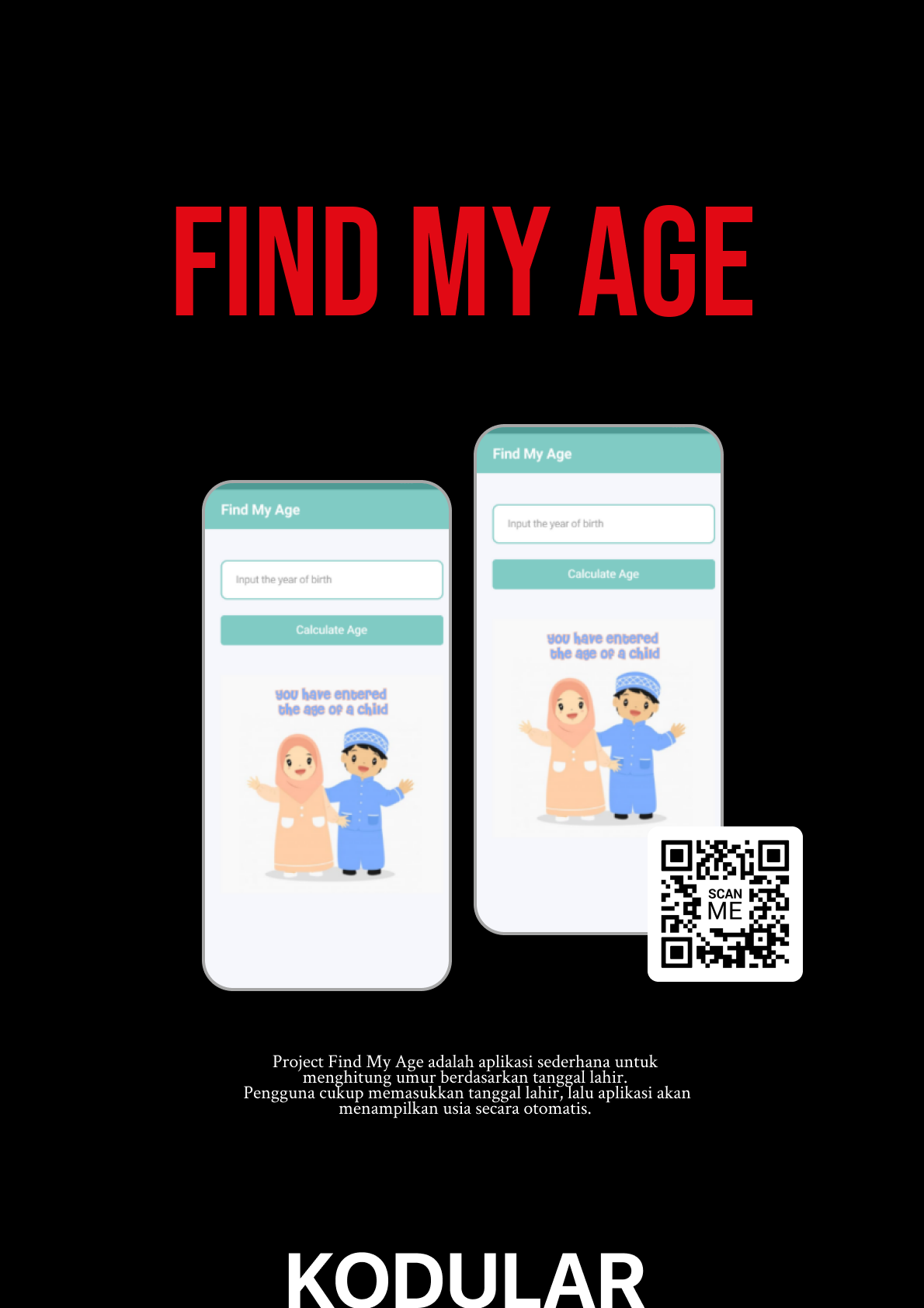 Find My Age adalah sebuah aplikasi interaktif yang dirancang untuk membantu pengguna mengetahui usia mereka secara otomatis berdasarkan tanggal lahir yang dimasukkan. Proyek ini tidak hanya berfokus pada hasil akhir berupa perhitungan usia, tetapi juga pada proses pengembangan yang melibatkan logika pemrograman dasar, pengolahan data tanggal, serta validasi input agar aplikasi lebih akurat dan mudah digunakan.